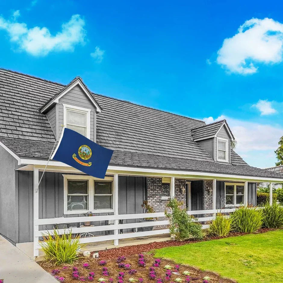 Our Idaho State Flag is 3ft x 5ft and double-stitched with brass grommets for durability. It's the perfect size for hanging in a window or proudly waving outside your home.